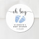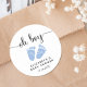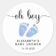 Os adesivos bonitos para o seu chá de bebê favorece e correspondência com "oh boy" em um roteiro bonito com pestanas e uma cor azul pastel de pés de bebê. Por baixo, você pode personalizar facilmente com seu nome e data de chá.