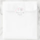 Um adesivo circular clássico de chá de fraldas moderno, com motivos dos flocos de neve cor-de-rosa-inverno e prateada, com o texto diz "Bebê, está frio lá fora"