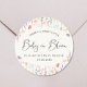 Um adesivo de chá de fraldas neutro em relação ao gênero com creme leve e elegante para seus convites, favoritos para festas e cartas de agradecimento com aquarelas de flores silvestres delicadas inspiradas em vassoura e "Baby in Bloom" escritas em um roteiro contemporâneo na moda. Personalize com o nome da data de mamãe e chá.