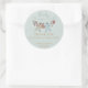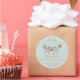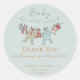 Estes Chás de fraldas de inverno neutros em termos de gênero Obrigado Os adesivos apresentam ilustrações bonitinhas desenhadas à mão de fatos de pijama, animais de pelúcia e bíblias de bebês pendurados em uma linha de roupas. Nome personalizável, evento, data e um obrigado pessoal da mensagem. Fundo verde macio elegante.