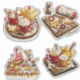 Que forma excelente de conseguir 4 panificação individual de alimentos e beber adesivos numa folha 8x8. Você encontrará Papais noeis em muitos trajes enquanto ele navega em sua casa. Cada adesivo terá um tamanho de cerca de 3 a 4 polegadas se escolher um adesivo de vinilo 8x8.