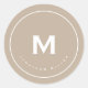 Um simples adesivo de papelaria com medalhão clássico de monograma mostrado com inicial de monograma e nome em uma fonte moderna em um fundo bege. Você pode personalizar usando os campos fornecidos. Ideal para envio, rotulagem ou decoração.