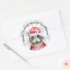 Uma ilustração adorável com aquarela de um guaxinim no chapéu vermelho de Papai Noel e no suéter destaca esse adesivo redondo caprichoso que pode ser personalizado com o texto desejado. O fundo desta design tem um padrão de cinza branco e bege-bege-pastel neutro. Estes autocolantes estão disponíveis em 2 tamanhos: o tamanho pequeno de 1/2 polegadas é excelente para utilização como selos de envelopes ou em pequenos presentes e favores. O tamanho maior de 3 polegadas é uma escolha excelente para usar em presentes maiores, pacotes, produtos cozidos, favoritos para festas e muito mais.