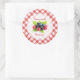 Adesivos retrorreflectores personalizáveis para compota de fruta vermelha caseira, geleia ou conserva framboesas com mirtilos frescos, amoras e framboesas em tablete de gingham vermelho e branco. Eles podem ficar presos na tampa ou no próprio pote e ter uma coleção personalizada. Outros adesivos de geleia de fruta também disponíveis!