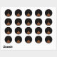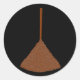 Esta folha de adesivos redondos apresenta uma imagem de um Besom antiquado, ou vassoura de bruxas. O besom é marrom e está coberto de muitos galhos. O fundo é preto.
