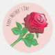 A big beautiful hand drawn red rose on a pink sticker.