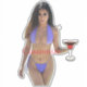 Belo modelo de biquíni morena posando em um biquíni azul lótus de 2 peças, segurando uma margarita vermelha para personalizar com sua própria saudação, nome, mensagem, etc