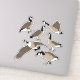 Este conjunto de adesivos tem 6 adesivos diferentes em forma de gansos no Canadá. As ilustrações têm um estilo realista com aves em castanho, preto e branco.