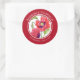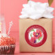 Projetado com base na minha ilustração floral de aquarela de papoila vermelha. Eu pintei estas adoráveis e vibrantes papoilas vermelhas, mas delicadas, do meu quintal, Eu só tive que capturá-las porque elas não floresciam tanto. É um belo lembrete de um belo dia de Verão, e espero que também o possam aproveitar. A design tem um círculo vermelho-escuro com textos em cima e em baixo e é adequada para o aniversário, o aniversário ou o chá de panela. Personalizou isso com seus próprios textos na minha loja Zazzle.