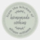 Adesivo de biscoitos caseiros rústicos e modernos com o texto da cozinha de, biscoitos caseiros e seu nome em caligrafia moderna em um fundo verde pastel. Basta adicionar seu nome e o nome do produto ao rótulo caseiro. Exclusivamente projetado para você pelo Happy Dolphin Studio. Se precisar de ajuda ou produtos correspondentes, entre em contato conosco em happydolphinstudio@outlook.com.
