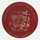 adesivo de qualidade cozida em casa com um falso guião em folha de ouro com letra branca "Feliz e Brilho" com espirais decorativas e as suas informações rodeadas em dois fundos de tons velvet preto e vermelho