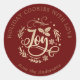 adesivo de qualidade cozido caseiro com falso roteiro de folha de ouro na fonte branca "Joy" com espirais decorativas e suas informações cercadas em dois fundos de tonalidades veludo preto e vermelho