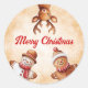 Celebrar as férias com este adesivo bonitinho com biscoitos festivos de pão de gengibre, uma rena lúdica, um boneco de neve e um homem com chapéu. O fundo aquoso castanho com flocos de neve delicados e o texto "Feliz Natal" dá-lhe uma sensação quente e sazonal. Perfeito para empacotamento de presentes, rascunho ou personalização de cartões de natal e envelopes, este adesivo é uma maneira divertida e fácil de espalhar alegria de férias.