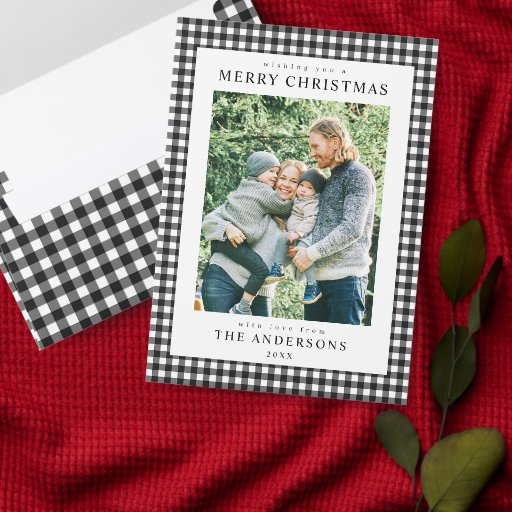 Create your own custom Christmas stickers featuring minimalist typography on a cute classic black and white gingham plaid pattern background.