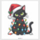 Adesivo Black Cat Christmas Lights Santa Hat Funny Xmas Ca