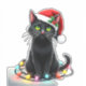 Adesivo Black Cat Christmas Lights Santa Hat Funny Xmas Ca