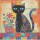Black cat folk art, whimsical floral pattern, vibrant and decorative.