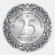 Black ornate floral circle on a silver background, customizable silver wedding Anniversary. Celebrating 25 years of happy memories, customizable text.