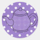 Uma bela ilustração de um bule de chá com uma design bolinhas. O fundo é uma grande design bolinhas.