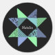 Painel de colchetes de colcha de colcha de colchetes Blue e green Ribbon Star sobre adesivo preto para uma costureira, um estudante, ou uma colcha de colchete ou seu BFF. Mantenha seu material escolar e garrafas de água bonito!