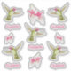 Cortar vinhetas vinílicas de beija-flores e flores de fuchsia rosa e branca.