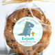 Announce to the world that your kindergarten grad has reached their milestone whenever you use this modern, simple, kawaii, personalized thank you sticker. A fun, whimsical, playful visual of a cute, bold, navy blue t-rex, and fun, handwritten typography over a light turquoise blue and white striped background, honors the kindergarten grad. Add love and joy to your party whenever you use this simple, modern, and whimsical, custom round sticker. Personalize the custom text with your graduate’s name, class year and special message. Available in 2 sizes:1 ½” and 3”, square or round formats. Matching invites, banners, paper plates and napkins, table confetti and other graduation goodies are also available in this special and cool collection. Guaranteed to add stylish fun to their goody bags, envelopes – just about anything!