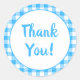 Crie seu próprio design gingham mudando o fundo azul do céu para sua cor favorita. Você também pode alterar o tamanho e a orientação da imagem do padrão de gingham de azulejo perfeito. Corresponda a cor do design de texto "obrigado você" à cor de fundo, se quiser. Obrigado de gingham azul, seus adesivos de casamento.