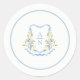 Blue Hydrangea Crest Monogram, wedding stickers is vintage-inspired soft blue and white design that's perfect for a garden or coastal-themed wedding. The sticker features an elegant monogram crest with light blue color typography A blue and white hydrangea pattern surrounds the design to add some color. You can easily customize this design with your details. Happy planning!