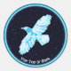 Uma imagem de linha simples, brilhante, azul e branca de um Raven (Corvus corax) em uma imagem de fundo estrelada. Adicione seu próprio texto.