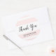 Estes adesivos "Obrigado" com o padrão de listras cor-de-rosa são perfeitos como um toque final para embalagens de produtos ou itens de promocional.