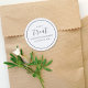 Um simples rótulo de adesivo de favor com um agradecimento, um script de caligrafia de casamento em azul claro, um modelo minimalista de take-a-trat, um favor de festa de adesivo criativo, um bufê de doces barra de biscoito fofo, um simples círculo minimalista script, um chic caprichoso personalizado, rótulos criativos e elegantes, uma recepção simples limpa e básica, suprimentos para festa de recepção de casamento, para recepção de casamento com decoração de tipografia de texto branco