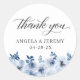 Adicione um toque de elegância boêmica aos seus favores de casamento com estes Boêmianos Dusty Blue Floral Obrigado Stickers! Apresentando delicadas flores azuis empoeiradas, esses adesivos são perfeitos para adicionar um toque final aos seus favores de casamento ou notas de agradecimento. E com a ferramenta design de Zazzle, você pode facilmente personalizar esses adesivos com seu próprio texto e cores para torná-los verdadeiramente únicos.