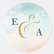Um selo de envelope de casamento monograma com ampersas e aquarelas da costa oceânica. Esta bela design tem uma praia arenosa e fundo marinho. A ampersand está na elegante caligrafia dourada e a modelo está pronta para você adicionar a noiva e as iniciais do noivo. Simples, convidando a design para um casamento de destino tropical, casamento vintage à beira-mar, tema náutico ou de verão à beira-mar. Por favor, procure na minha loja a coleção Boho Beach para coordenar convites, cartões de gabinete e acessórios de correio.