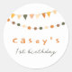 Um adesivo giro que combina com a nossa coleção de Festas de aniversário do One Bobo Goose First. Este design sem sexo apresenta uma paleta de cores boho e sinalizadores de bunting. Pode ser usado para bolsas de favor, presentes de aniversário, cartas de agradecimento e muito mais. Clique em "Personalizar este modelo" e preencha as caixas fornecidas com seus detalhes. Sinta-se à vontade para me mandar qualquer pergunta, ficarei feliz em ajudar! Exibir a coleção vinculada nesta página para coordenar itens.