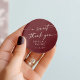 Esse burgundy vermelho-boho, um doce obrigado que você prefere um adesivo redondo clássico é perfeito para um casamento minimalista. O design da boêmia moderna, vinho marrom escuro, apresenta caligrafia rústica simples com estilo único, mas clássico. Personalize seus adesivos de favor com seus nomes e data de casamento.