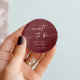 Este boho chic burgundy vermelho mint para ser um adesivo de favor é perfeito para um casamento minimalista. O design da boêmia moderna, vinho marrom escuro, apresenta caligrafia rústica simples com estilo único, mas clássico. Personalize seus adesivos de favor com seus nomes e data de casamento.