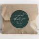 Este boho chic emerald green um doce obrigado que você prefere um adesivo redondo clássico é perfeito para um casamento minimalista. O design verde boêmico moderno da floresta de caçadores de escuros e modernos apresenta uma caligrafia rústica simples com um estilo único, porém clássico. Personalize seus adesivos de favor com seus nomes e data de casamento.