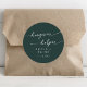 Esse embusteiro de ressaca verde-esmeralda favorece o adesivo redondo clássico é perfeito para um casamento minimalista. O design verde boêmico moderno da floresta de caçadores de escuros e modernos apresenta uma caligrafia rústica simples com um estilo único, porém clássico. Personalize seus adesivos de favor com seus nomes e data de casamento.