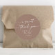 Este boho neutro ensinou um doce obrigado que você prefere um adesivo redondo clássico é perfeito para um casamento minimalista. A design boêmica moderna de tom castanho bege apresenta uma caligrafia rústica simples com um estilo único, mas clássico. Personalize seus adesivos de favor com seus nomes e data de casamento.