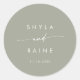 Esses nomes verdes de boho chic são perfeitos para uma suíte de casamento minimalista. A moderna design boêmica verde-luz neutra apresenta uma caligrafia rústica simples com um estilo único, mas clássico. Personalize os autocolantes com seus nomes e data de casamento.