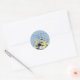 Um seletor elegante de endereço de retorno do Boho personalizável com bonito pansias de primavera de giras coloridas, narcisos e borboletas em um fundo vitoriano azul pálido e vívido. Você pode mudar facilmente o plano de fundo, a ortografia do texto, a cor da fonte, o tamanho e o estilo com o botão Zazzle Personalizar.