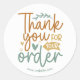 Informe aos seus clientes que apreciam seus negócios com esses adesivos "Obrigado pelo seu pedido". Personalize facilmente o site com apenas alguns cliques.