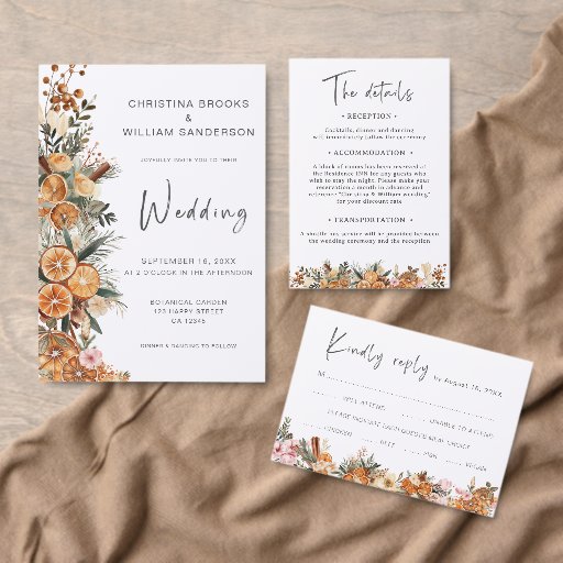 Esta bengala de casamento de férias inspirada em vassoura é a combinação perfeita de encanto rústico e elegância moderna, fazer ideal para uma celebração de Natal ou casamento no inverno. O cartão apresenta uma impressionante design de aquarela com delicados florais de inverno, incluindo sotaques de laranja secos, que acrescentam um toque de calor e vibração à paisagem de inverno.