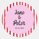 This modern round wedding sticker brings playful polish to your celebration details with hand-painted red stripes framing a soft blush center. The expressive brush lettering adds a romantic, artistic touch, making it perfect for sealing envelopes, decorating favors, or adding personality to welcome bags. Stylish and cohesive with your red-and-pink stationery suite, this sticker turns even the smallest detail into a bold, joyful statement.