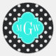 Padrão Pontilhado de Polka Preto e Branco, Rótulo Aqua Turquoise Quatrefoil 3 Monograma Inicial Personalize o rótulo com o seu 3 monograma inicial, nome ou outro texto. Você também pode alterar a fonte, ajustar o tamanho da fonte e as cores da fonte, mover o texto para ajustar o espaçamento da letra, etc. Se você quiser este padrão em outras cores, basta soltar um e-mail. 2013 ©FantabulousPatterns Todos os direitos reservados
