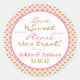 Cor-de-rosa-chique, ouro e bolinhas brancas personalizadas adesivos de buffet doces que são perfeitos para um casamento ou chá de panela. Você pode personalizar os nomes e a data do casamento usando personalizar. Você pode alterar qualquer outro texto também na seção personalizá-lo. Certifique-se de obter o tamanho desejado com estes, pois há dois tamanhos disponíveis. Chic e na moda.