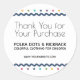 Promova sua empresa e marca em envelopes, pacotes, pastas e produtos de promocional com esses adesivos com bolinhas coloridas, rack, texto personalizável que diz: "obrigado você para sua compra" e um lugar para seu nome de loja, slogan e site. Esta design é minimalista e divertida, e apelará a pessoas de todas as idades. Personalize o texto para ajustado das suas necessidades.