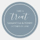 Um simples agradecimento favor agradecer etiqueta adesiva com um script de caligrafia de casamento azul poeirado, um modelo minimalista de pegue e leve, um rótulo adesivo criativo de festa, para doce buffet barra cookie fofo, um círculo minimalista simples, um personalizado caprichoso chique, um rótulo criativo elegante e sofisticado, uma recepção simples básica limpa simples, com texto branco caprichoso divertido, para suprimentos de festa de casamento noivado