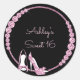 Um design para as meninas de vidro - apresenta um círculo de estrutura de diamante rosa, bombas rosa-reluzente de salto alto e texto personalizável. Perfeito para 15 festas de aniversário doces, noivas e festas de solteira, festas de quinceañera e outros eventos de meninas de vidro.