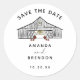 Design de queda rústica apresentando um tipo de celeiro com ilustração de abóboras. Os nomes dos casais estão abaixo de sua data especial, "e" está em um roteiro elegante de caligrafia. Esta opção para salvar o adesivo de data é um toque pessoal adicionado para enviar as datas salvas.